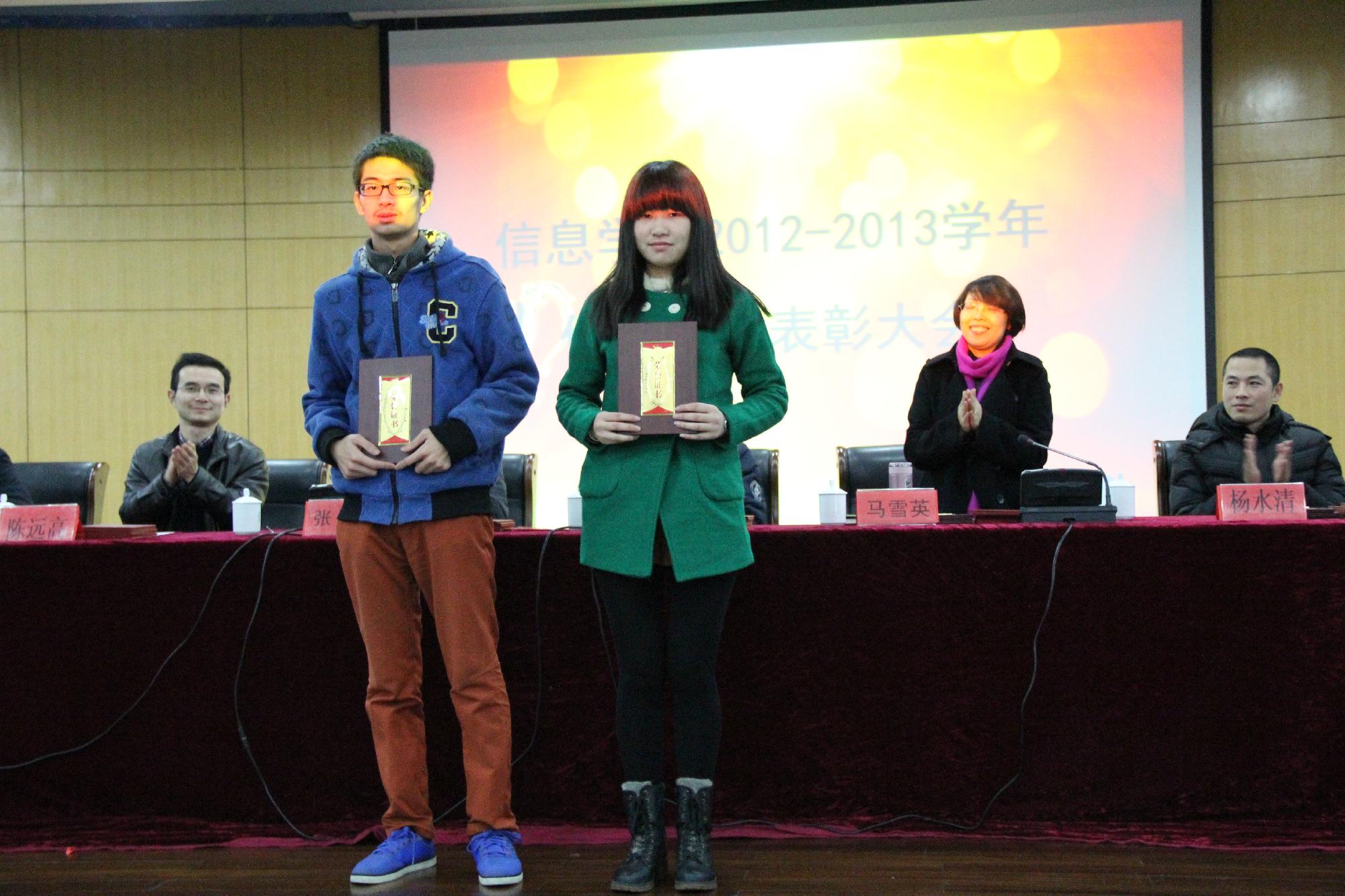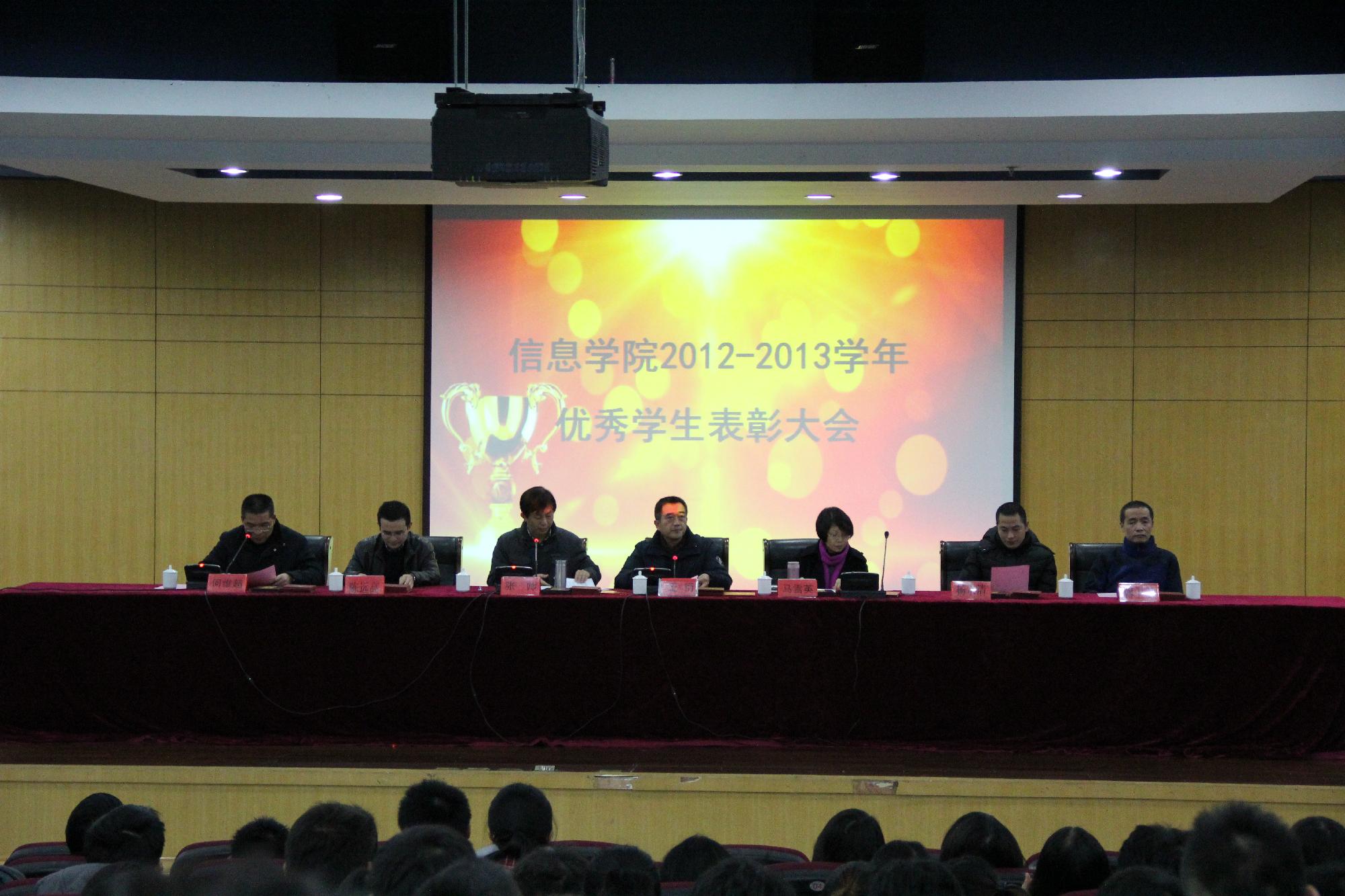 2012—2013年度表彰大会在学术中心第一报告厅隆重举行。大会由党总支副书记何维超主持,党总支书记王衍、副院长马雪英、副院长张帅、计算机系主任傅卫卫、电子商务系主任陈高远、信息系主任助理杨水清出席本次大会。
