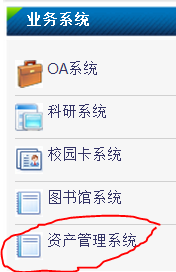 或进入校园门户后,找到左下边的“业务系统”进入到“资产管理系统”,