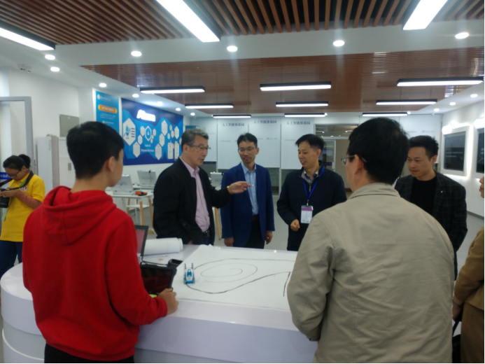 专家组听取了人工智能协会同学对相关设备的介绍,并体验了图像风格迁移系统、虚拟现实体验系统、人机对弈机器人、激光雷达小车等,对我校建设人工智能体验园,开展人工智能+教育的举措表示肯定。