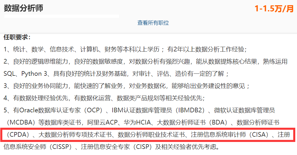 现今,随着信息技术的发展和应用,信息系统审计在各个行业都有着很大的需求,随意点开招聘网站浏览,就能看到职业招聘中拥有CISA证书的人员是具有强大的择业优势。